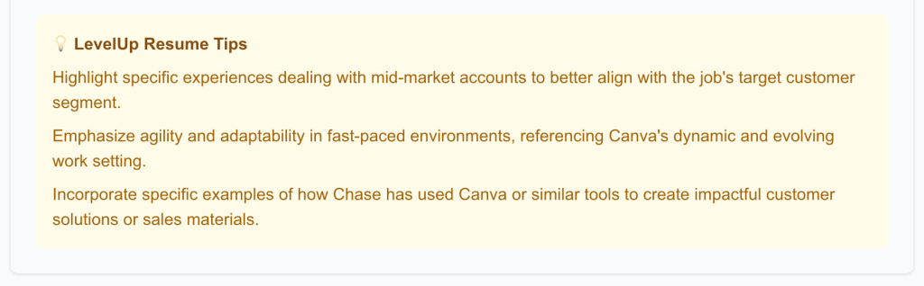 And it then offers LevelUp Resume Tips — a few tips for improving the resume.