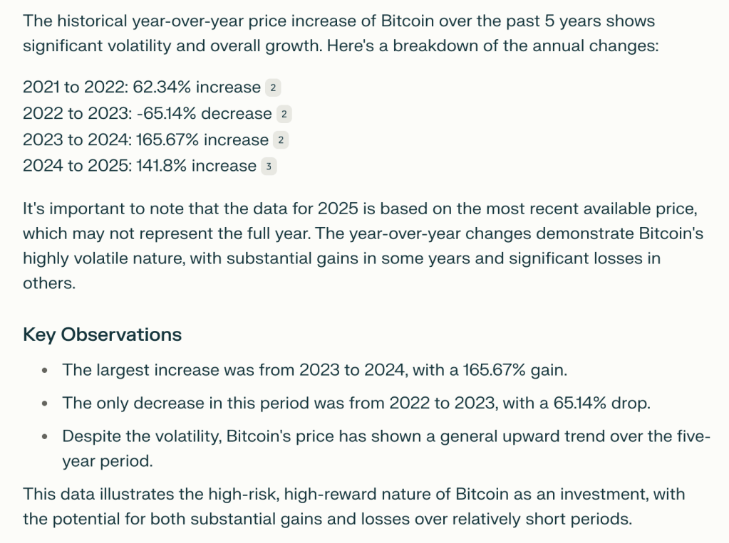 And I needed the historical performance of bitcoin over the past 5 years.