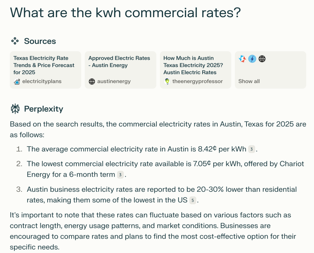 And using Austin as the location for the operation, I needed to know what the expected 2025 kwh commercial rate would be.