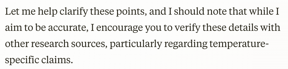 At one point in our back-and-forth, Claude did tell me to verify my sources.