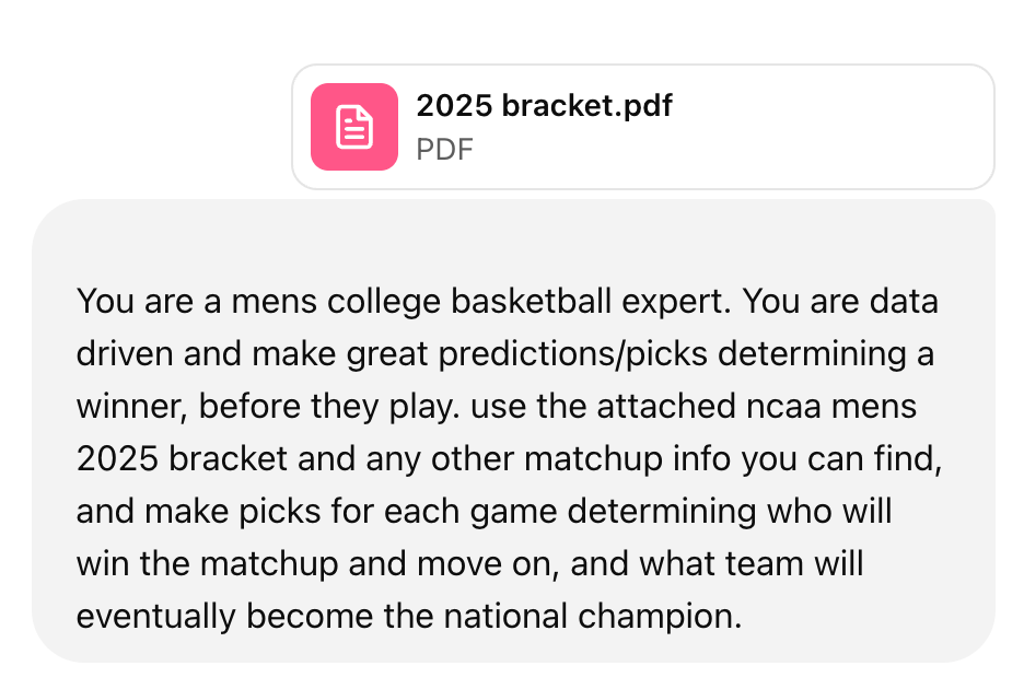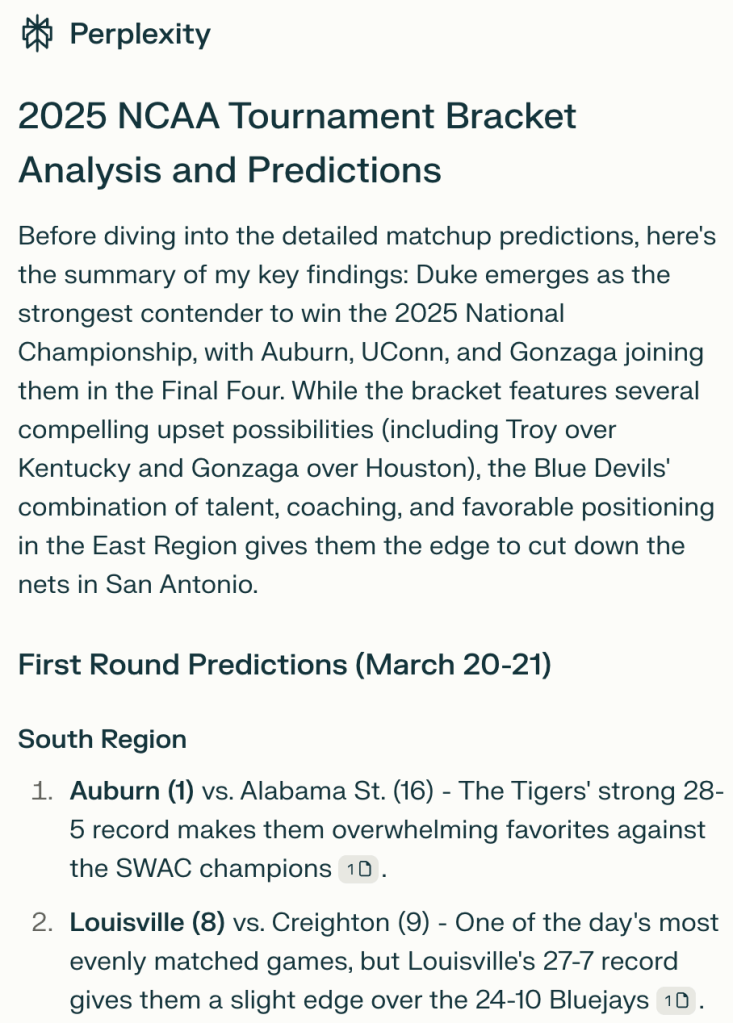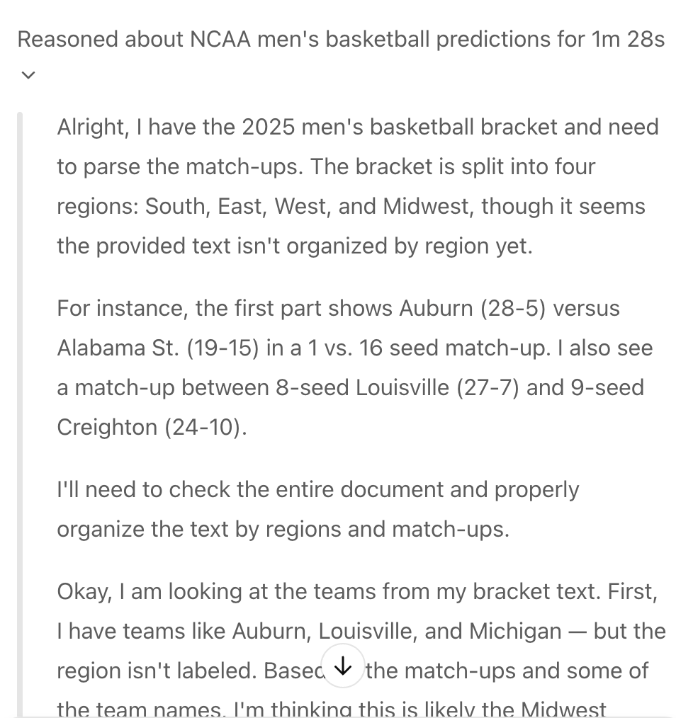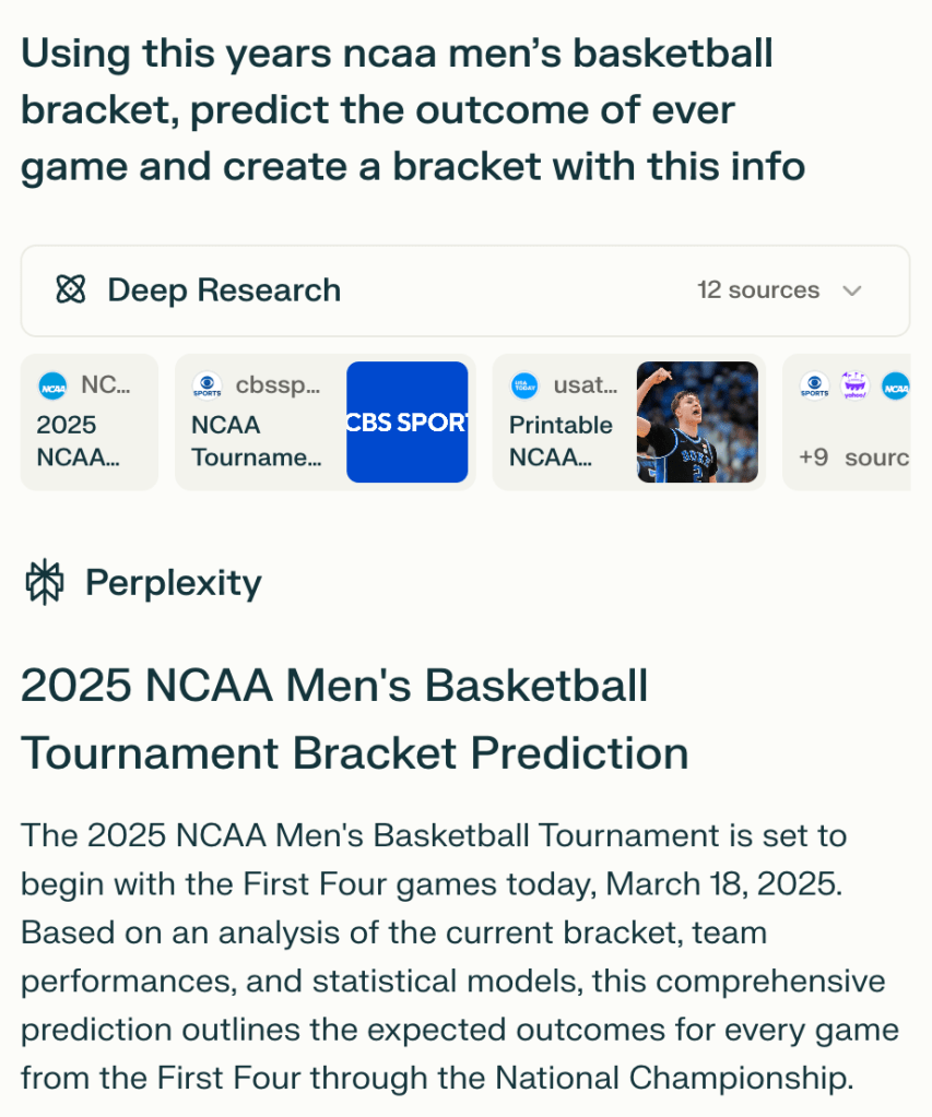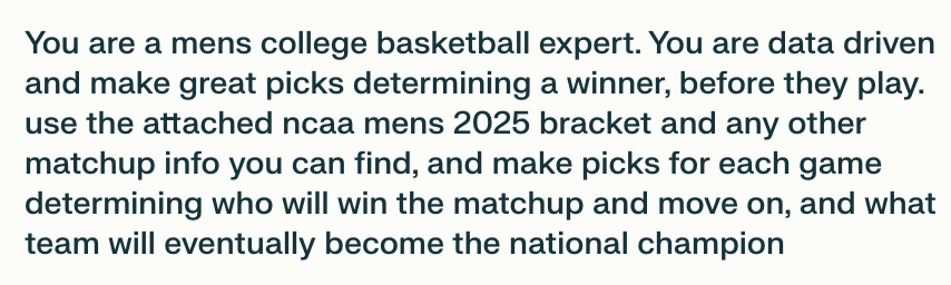 But this year, I decided to do something different. I wanted to free up that mental capacity and let AI tackle my bracket.