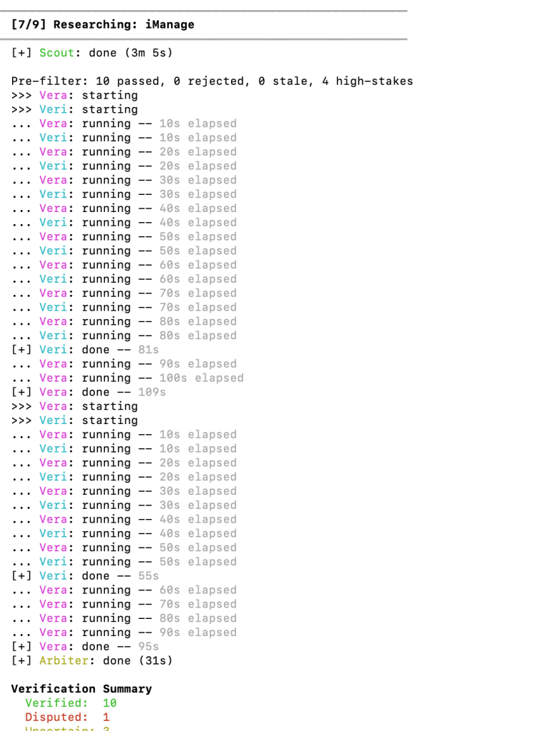 Here is how it works: Once the research agent completes its work, it passes its analysis (output) to the validation layer. Two agents (Veri & Vera) then validate all claims independently.